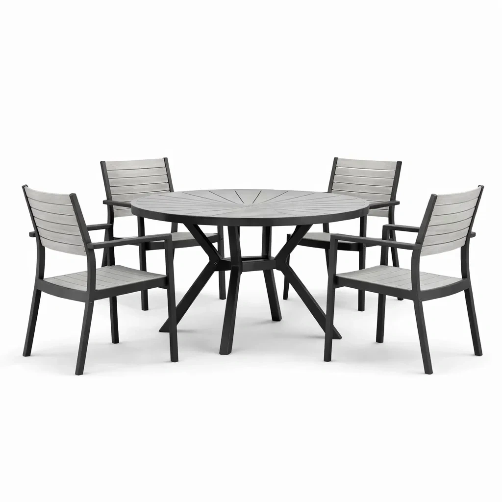 Set tavolo e sedie rotondo in Composito e Metallo Grigio