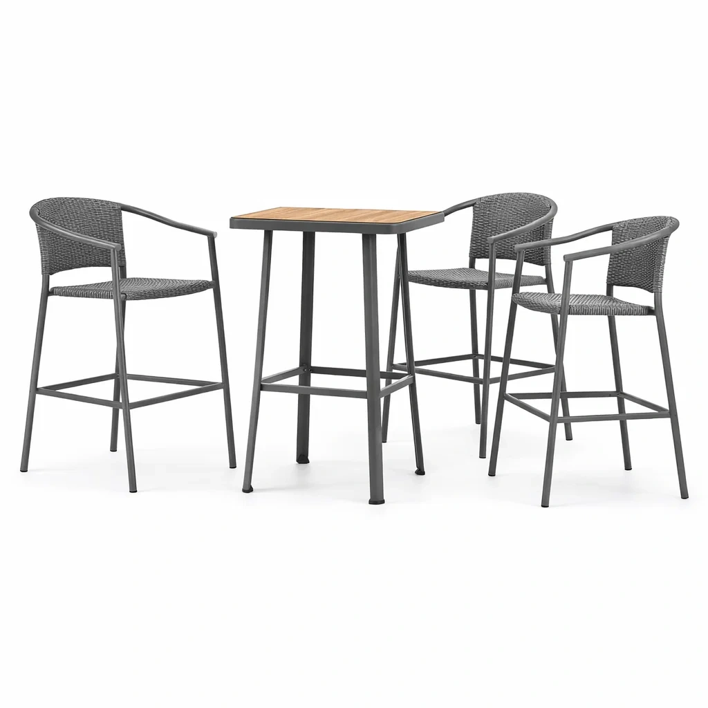 Prodotti inclusi: 1 tavolo da bar, 3 sedie da bar.