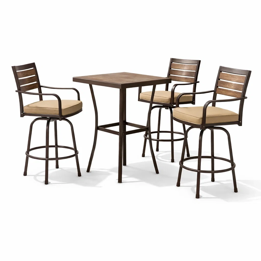 Produzione: Include un tavolo quadrato e tre sedie girevoli con cuscini.